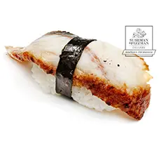 Ролл со сливочным сыром, обернут пластиками копченого угря, поливается соусом "Унаги" и посыпается белым кунжутом.810руб. 205 гКупить -
