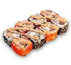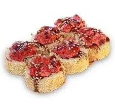 Ролл в сырной тортилье с беконом, сливочным сыром, карбонадом и помидором. Запечен под соусом "Бэб".435руб. 175 гКупить
