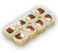 Ролл с начинкой из куриного филе, помидора и листа салата. Запечен под шапкой из сыра гауды и сливочного сыра. Украшен соусом "Спайс" и зеленым луком.420руб. 215 гКупить