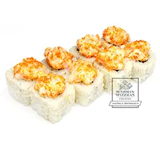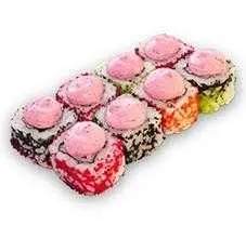 Ролл, панированный икрой масаго, с начинкой из сливочного сыра. Запечен под шапкой из лосося и соуса "Яки". Полит соусом "Унаги" и посыпан черным кунжутом.430руб. 215 гКупить -
